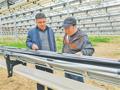 如何让游客提高采摘体验是农场一直在思考的内容。经过不断研究,赵春锋对栽培槽进行了两处改动:将栽培槽底部的废液收集槽剥离,这样比传统的废液包裹式种植槽湿度更低,以解决草莓、番茄等作物因为湿度大病害多的难题;为悬空的种植槽专门定制两条“腿”,让它落地后能稳稳站住,更利于植株种植生长。
