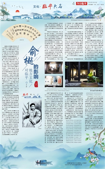 《俞樾对临平地方文化的影响(上)》刊登于2024年3月13日《今日临平》第4版