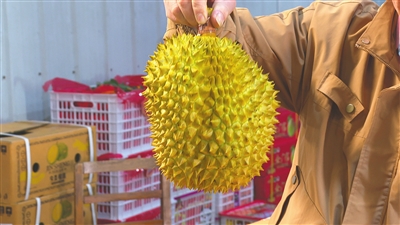 在北沙果品市场,不少店铺把榴莲放在门口的显眼位置。“泰国的金枕榴莲零售28元一斤,按箱来买更便宜,里面有30斤左右。”据老板徐国忠介绍,榴莲价格近期降幅明显,5月之前,32斤一箱的A果金枕榴莲批发价格还在1000元以上,近期大量上货之后降到700元左右。另一家店的老板表示,供应量上来后,榴莲的价格降低,但销量上去了,一天最多能卖出好几十箱。