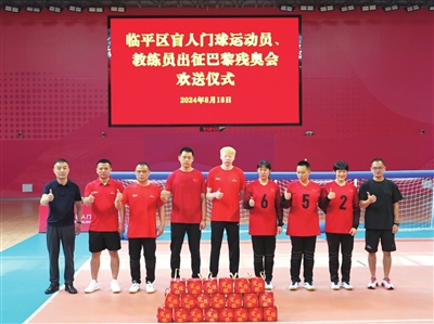 本报讯 (记者 汤晓洁 费陆斌 通讯员 陈益) 第17届夏季残疾人奥林匹克运动会将于8月28日至9月8日在法国巴黎举行。昨日,临平区盲人门球运动员、教练员出征巴黎残奥会欢送仪式在浙江塘栖国家盲人门球训练基地举行。区政协副主席、区残联主席团名誉主席章桂娣出席并作动员讲话。