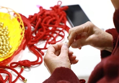 “快过年啦,新中式服饰火得不得了,我们得忙着赶制各种辅料。”最近,社区王阿姨每天都要来工坊“打卡”。挑丝线、绕圆扣、添装饰……一套动作下来,好看的盘扣便在她手上悄然成形。