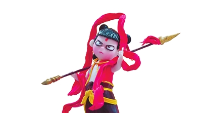 “做哪吒最难的是开脸,像眼睛的角度、三庭五眼的比例这些都很考验技巧,五官比例一出现偏差,就会影响神韵。”李东亚说话间,属于哪吒的“经典标志”黑眼圈就做好了。随后,经过按、捏、擀、划等一系列精细的动作,哪吒衣襟上便出现了逼真的褶皱,再配上凌空而指的火尖枪和随风飞扬的混天绫,哪吒的形象变得愈发立体。