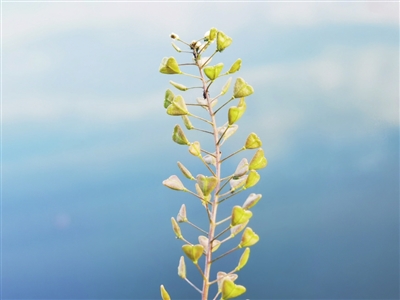 仲春,漫步于临平古海塘文化公园,当条块石塘、竹笼石塘、柴塘、鱼鳞石塘、范公塘等六道海塘赫然呈现在眼前,我的心灵被深深震撼。我无意间在公园小道上发现一丛清新可人的植物,叶片呈锯齿状,绿茎上轮生着一个个爱心果荚,顶部开着素雅的小白花。我蹲下身试图轻抚它,指尖刚触及就有一股清香扑面而来,气息既亲切又熟悉:“哦,是荠菜!”在这里与它不期而遇,我竟莫名地激动起来。