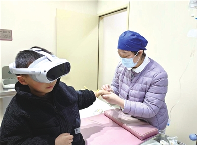 在区妇幼保健院门诊输液室,一项充满温情的护理创新正在开展。为缓解儿童输液时的害怕和焦虑情绪,医院推出“VR童趣疗法”,将冰冷的诊疗环境转变为奇幻的童话世界。