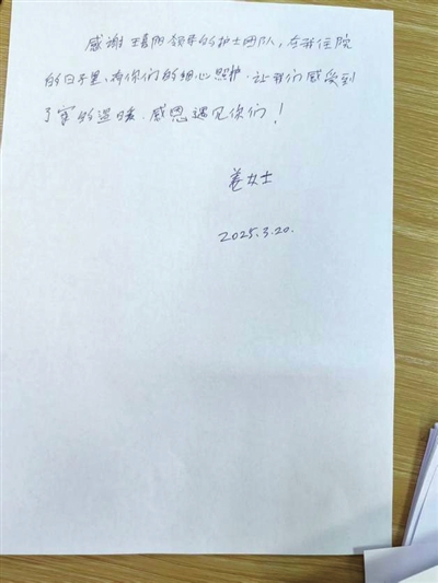 杨阿姨脸上漾开笑意:“姑娘,我们是刚复查完特地来找你的。”见护士长满是疑惑,杨阿姨递过一张纸——竟是一首工整的手写诗《感恩的心》。